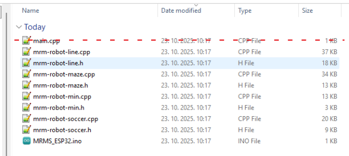 U skinutom MRMS_ESP32 direktoriju obrišite datoteku main.cpp jer se ona koristi samo u VS Code verziji.