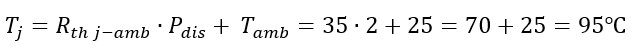 Potrebno je izračunati temperaturu silicija ukoliko je temperatura okoline 25°C i rasipa se izračunata snaga na H-mostu.