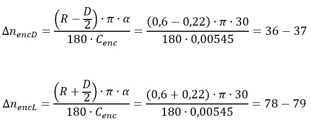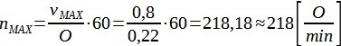 Nadalje izračunavamo broj okretaja kotača koji moramo postići da bi se robot kretao zahtijevanom brzinom od 0,8m/s. Kada podijelite maksimalnu brzinu sa opsegom kotača dobijemo broj okretaja u sekundi da bi robot ostvario zadanu brzinu. U tehničkim specifikacijama motora i reduktora broj okretaja je izražen u okretajima u minuti. Pošto jedna minuta ima 60 sekundi tada kutnu brzinu pomnožimo sa brojem sekundi u minuti i dobivamo broj okretaja u minuti.