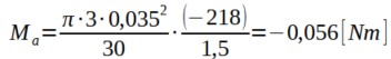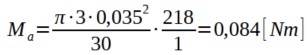 M4 = Mtr = μ∙m∙g∙r = 0,05∙3∙10∙0,035 = 0,053 [Nm]