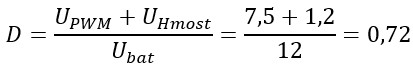 - nominalnog napona napajanja H-mosta koji se prosljeđuje na motore