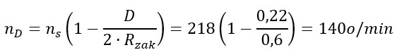 Brzina vrtnje kod maksimalnog momenta je zanemarivo veća od zahtijevane brzine vrtnje (n=218 o/min) , ali naš robot neće biti opterećen maksimalnim momentom i da pri tome mora postići brzinu n=218 o/min. Pri maksimalnom momentu mora postići brzinu n=109 o/min.