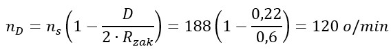 Da bi smo došli do tog podatka prvo moramo za svaki moment izračunati stvarnu brzinu vrtnje. U tehničkim podacima DC motora istaknut je podatak za brzinu vrtnje bez opterećenja, kojeg nazivamo prazni hod, te brzinu vrtnje za maksimalno opterećenje (At Max. Torque). Ovisnost brzine o momentu je linearna karakteristika pa ju jednostavno iz tehničkih podataka možemo primijeniti, a naziva se i vanjska karakteristika motora.