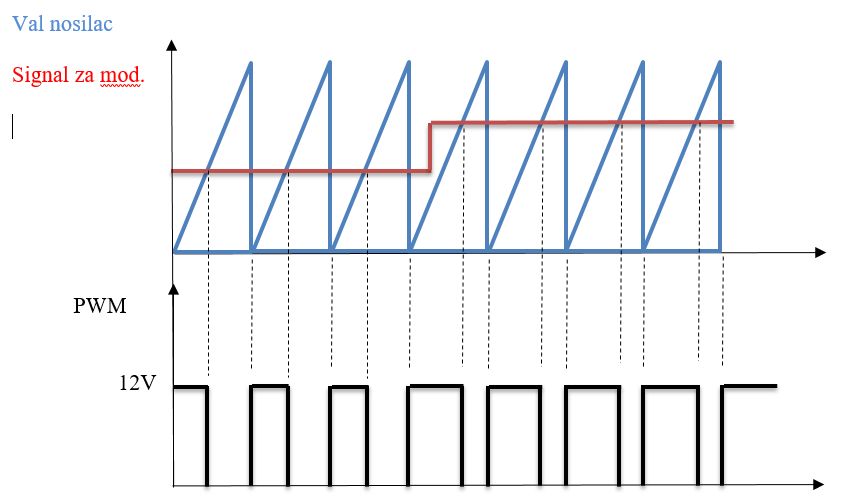 Kako se robot giba kroz profil gibanja tako se mijenjaju momenti opterećenja, a time i brzine vrtnje motora. Ukoliko promatramo područje jednolikog gibanja robot u tom području ne smije promijeniti svoju brzinu gibanja. Zbog promjene opterećenja (momenta) robot će promijeniti brzinu gibanja ukoliko napon napajanja motora ostane nepromijenjen. Regulacija brzine vrtnje motora, kod DC motora s četkicama, vrši se primjenom napona na motoru.